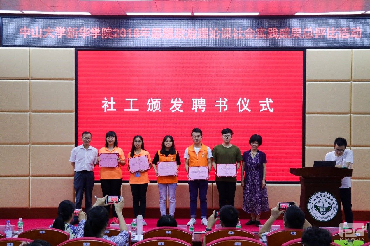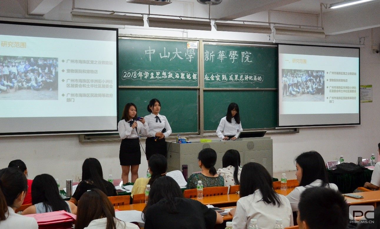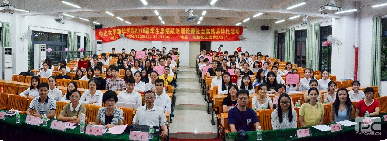 为了贯彻落实《中共中央国务院关于进一步加强和改进大学生思想政治教育的意见》(中发〔2004〕16号)、《中宣部中央文明办教育部共青团中央关于进一步加强和改进大学生社会实践的意见》(中青联发〔2005〕号)、《中共中央宣传部教育部关于进一步加强和改进高等学校思想政治理论课的意见》(教社政〔2005〕5号)、《中共中央国务院关于加强和改进新形势下高校思想政治工作的意见》(中发〔2016〕号)等文件精神和全国高校思想政治工作会议精神,宣传习近平新时代中国特色社会主义思想,帮助学生了解社会、认识国情,树立正确的世界观、人生观、价值观,坚定中国特色社会主义信念,提高运用中国特色社会主义理论分析解决实际问题的能力和服务大众、奉献社会的意识,培养理论联系实际的良好学风,马克思主义教学研究部于2018年6月20日、6月22日分别在穗莞两校区举行2016级学生思想政治理论课社会实践成果总评比活动。中山大学新华学院校长王庭槐、中山大学新华学院高等教育研究所副所长刘琰琳、教务处教务办公室科长龙浩芬、马克思主义教学研究部主任叶启绩、副主任吴素香、徐伟明,凤凰街家庭综合服务中心社工邱文等出席活动,谷曼、付晶、杨晓敏、李艳华、刘亚军、莫楠等六位教师担任本次活动的评委。