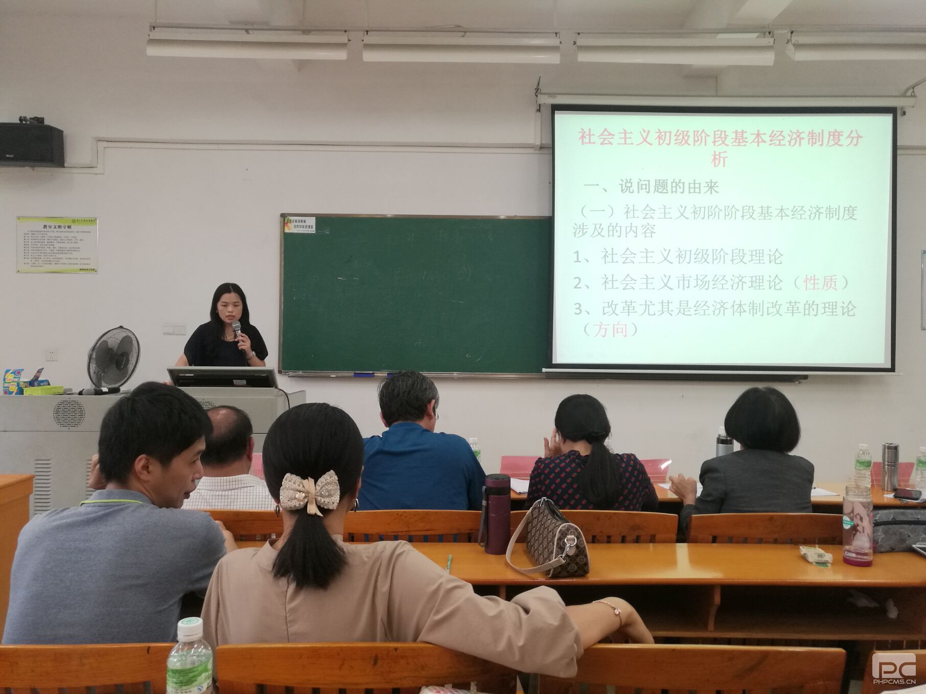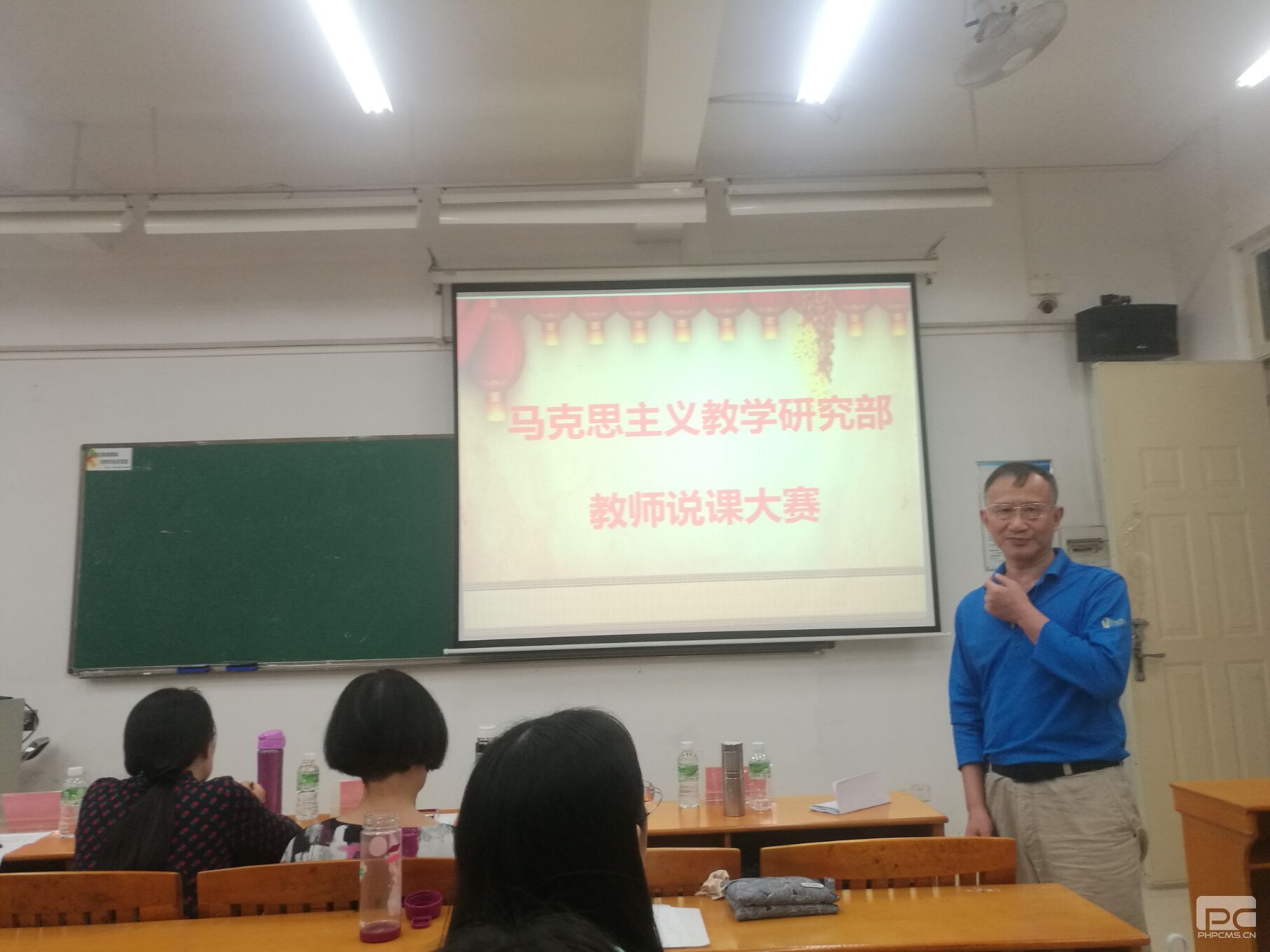 为了落实学校2018年春季工作会议上确立的“抓重点、补短板、强特色、固本培元厚内涵”工作要求,同时引导广大中青年教师不断提升教学设计水平,提高课堂教学质量,展示我校教育教学改革成果,促进教师交流,马克思主义教研部于2018年11月14日在东莞校区定静楼2B204举办了教师课程说课大赛(初赛) 。比赛特邀我校周云书记、教学督导陈玉川教授、马克思主义教研部主任叶启绩教授、副主任吴素香教授、周月英和徐光老师担任评委。