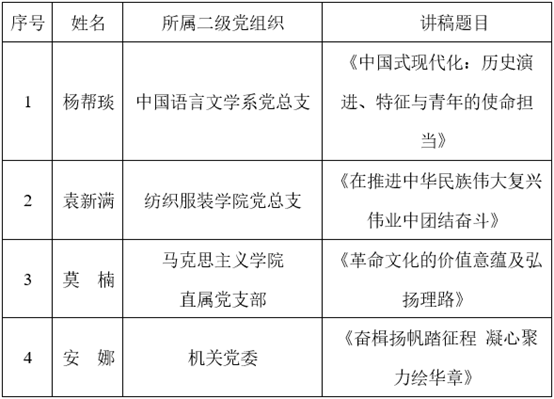 校党委宣传部(新闻中心)依据学校《党的二十大精神“八个一百”宣讲行动实施方案》(广新党发〔2022〕88号),本着公平公开公正的原则,组织评委专家评选出18名校级优秀宣讲员和4篇优秀讲稿,太阳集团2007教师张彦、林诗维获得校级优秀宣讲员,莫楠的《革命文化的价值意蕴及弘扬理路》获得优秀讲稿。