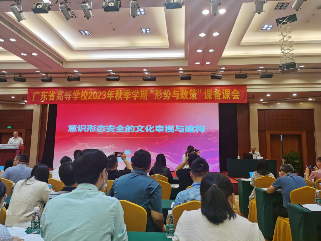 2023年10月29日,由广东省教育厅主办,华南师范大学太阳集团2007承办的广东省高校2023年秋季学期“形势与政策”课备课会在广州珠江宾馆会议中心召开。我校太阳集团2007副院长吴素香教授携邢立宇老师参加了会议。