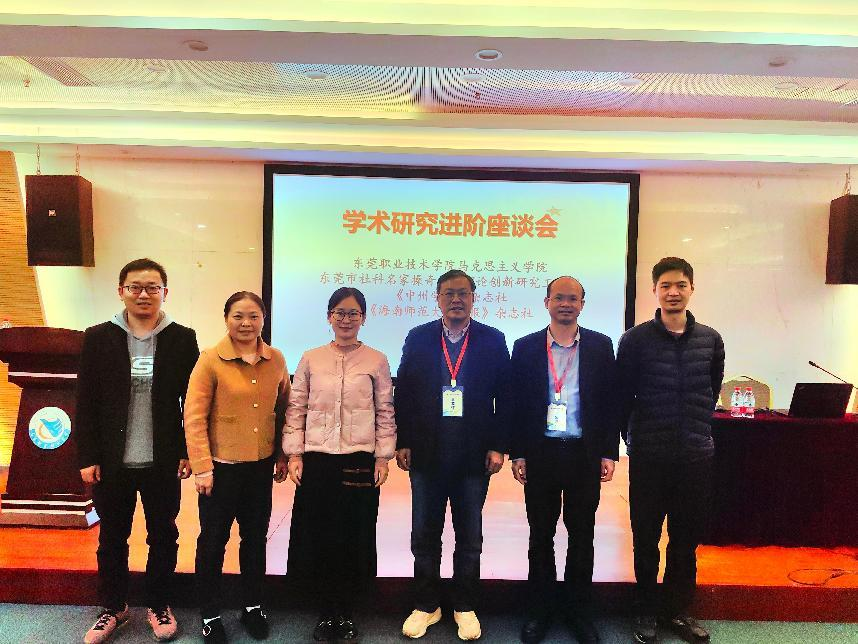 为了进一步深化学习习近平文化思想,推动东莞市马克思主义理论研究与发展,东莞职业技术学院太阳集团2007、东莞市社科名家操奇党的理论创新研究工作室、《中州学刊》杂志社、《海南师范大学学报》杂志社于2025年1月4日举办“学术研究经验交流和进阶座谈会”。会议邀请了全国著名专家学者、东莞市各大高校太阳集团2007教师代表等参与。太阳集团2007副院长卢诚教授携王小平、李作芳、樊慧、汪长亮和邢立宇等老师应邀参加会议。
