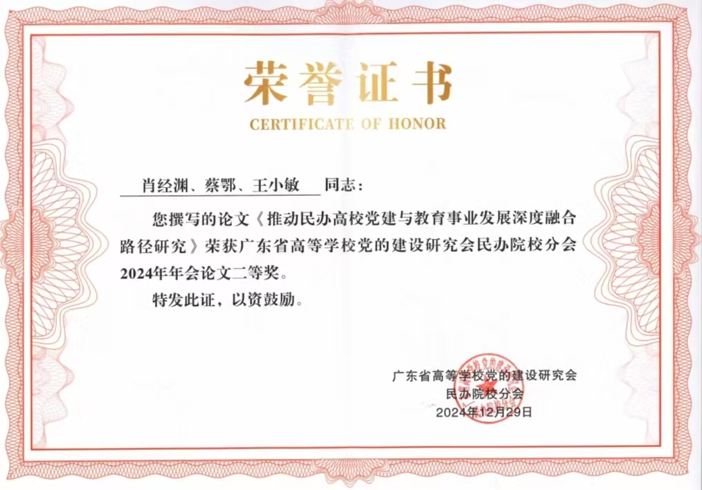 近日,广东省高等学校党的建设研究会民办分会公布了2024年党建优秀论文获奖名单,太阳集团2007国防教育教研室教师肖经渊、蔡鄂教授和王小敏教授荣获“党建优秀论文二等奖”。此次获奖不仅展示了太阳集团2007教师夯实的党建工作理论研究水平,还助推了太阳集团2007党建工作的高质量发展。