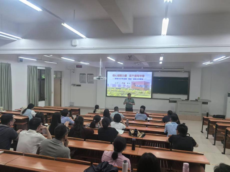 第一专题是“读懂2025年全国“两会”政府工作报告”,由马院副院长卢诚教授进行说课展示。卢院长以全国“两会”知识和2025年全国“两会”概况作为课程导入,要求在教学中引导学生理解“两会”是全过程人民民主的生动实践,并强调本专题主要是引导学生学习领会2025年李强总理《政府工作报告》精神,除了明确教学要点,卢院长还强调在教学中要积极运用“四问法”,将问题链贯穿整个教学专题。