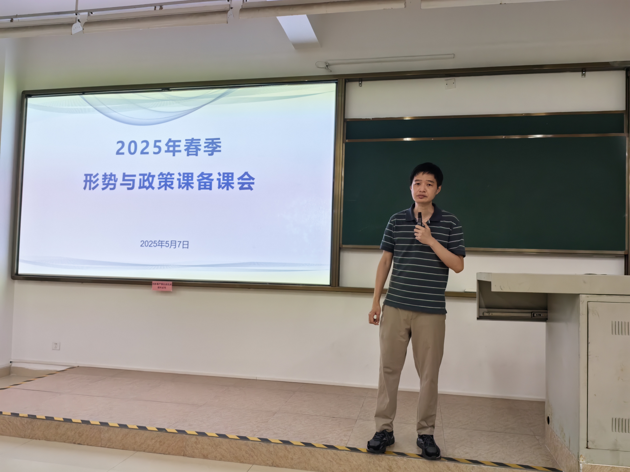 随后,邢立宇老师就本学期的教学要求和社会实践活动进行了讲解。要做好学习通建课工作、认真备课授课、组织好实践活动、组织好随堂考试,以及做好成绩录入和回卷工作。这学期形势与政策课的活动主题是“我是时事评论员——“形势与政策”课时事评论实践活动”。学生以小组为单位,关注2024年内国内外的重要时政新闻进行新闻图片时事短评。