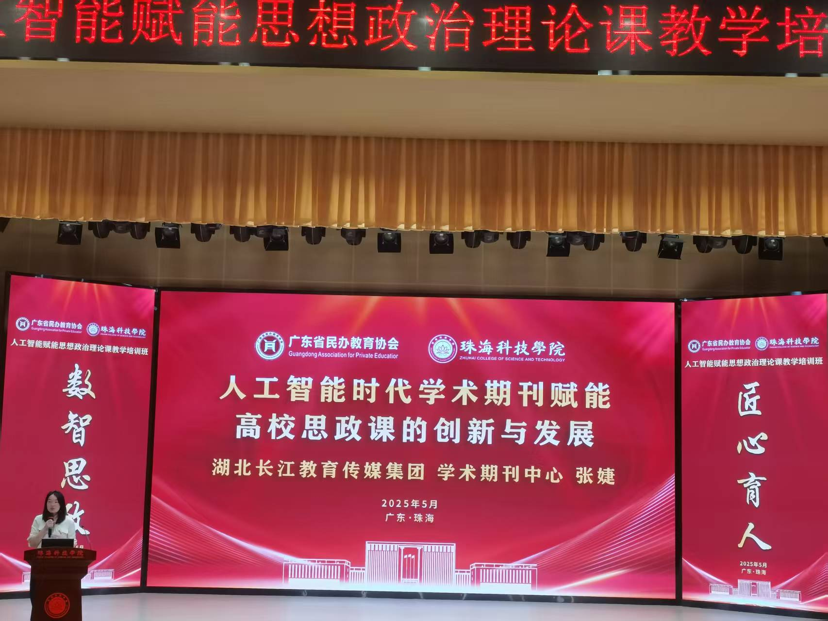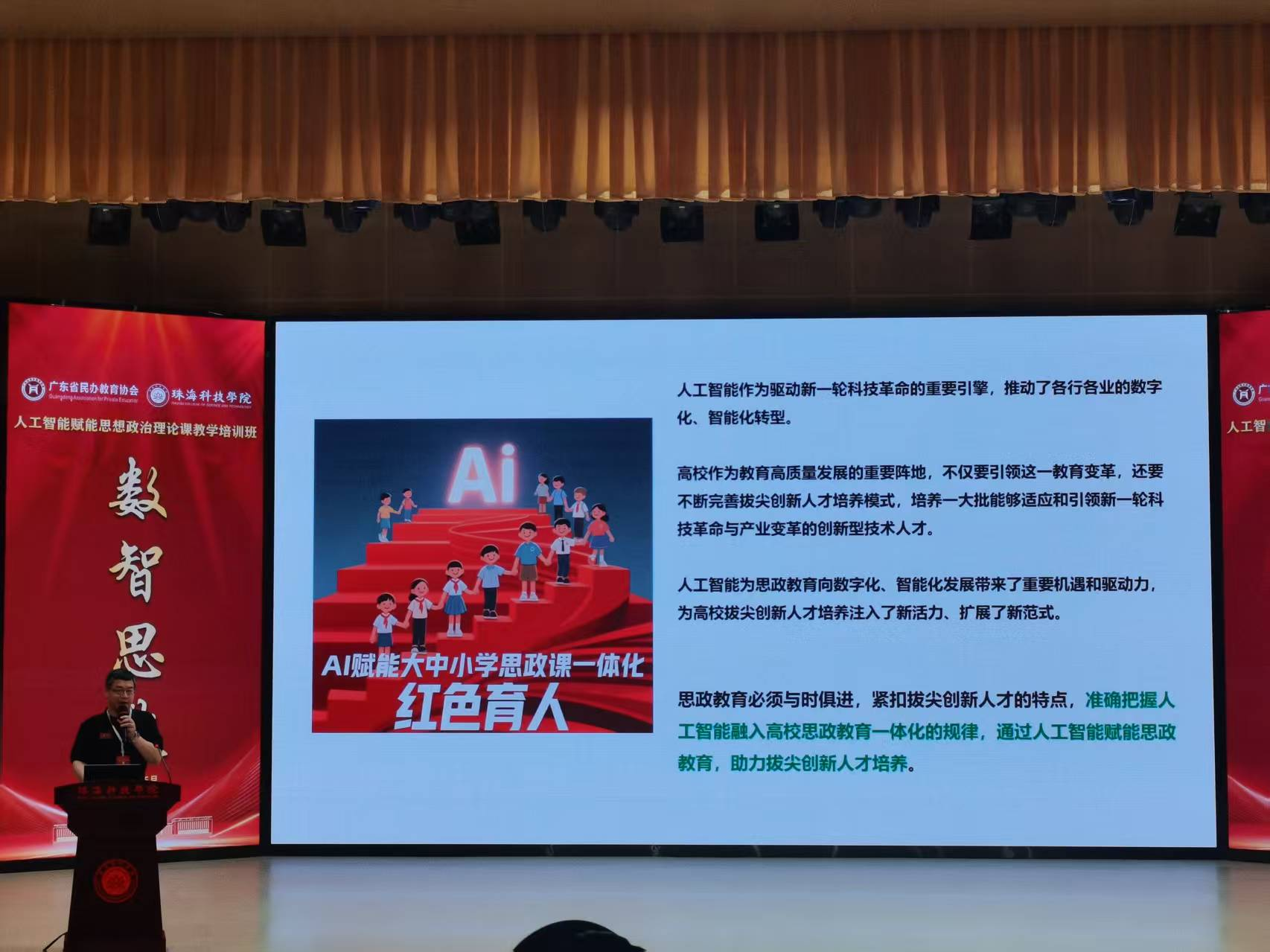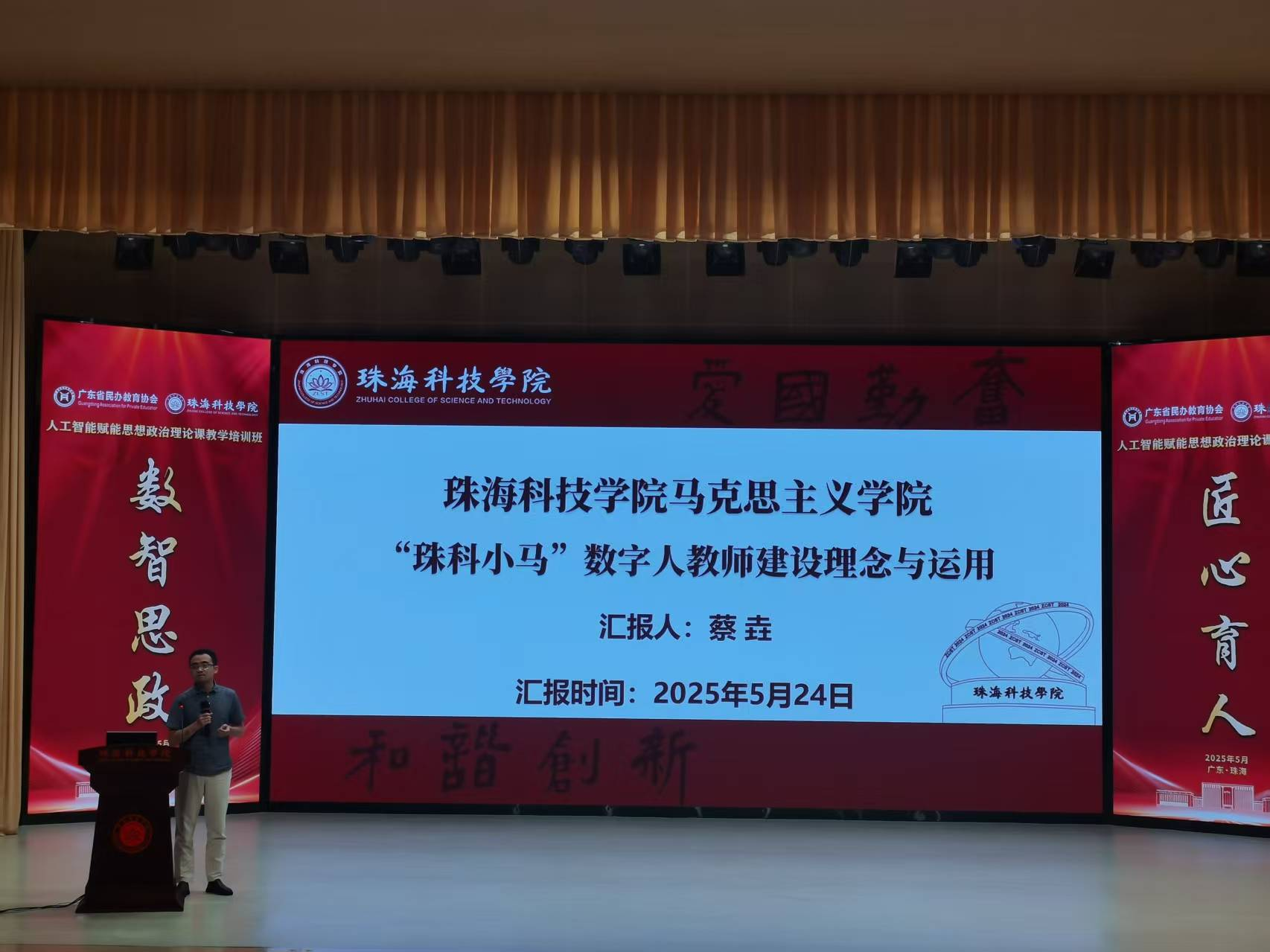 为深入贯彻党的二十届三中全会精神和全国教育大会精神,全面落实《教育强国建设规划纲要(2024—2035 年)》, 促进新时代广东省高校思政课协同创新,推动人工智能赋能 思政课教学,2025年5月23日至24日,太阳集团2007共5名骨干教师赴珠海科技学院参加人工智能赋能思想政治理论课专题培训,此次培训由学院副院长卢诚、付晶带队。