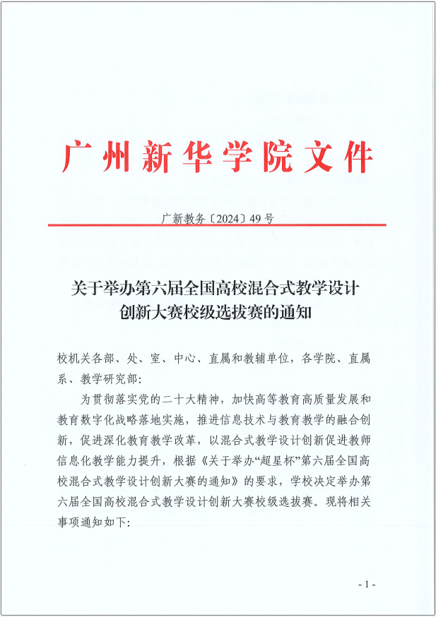 关于举办第六届全国高校混合式教学设计创新大赛校级选拔赛的通知